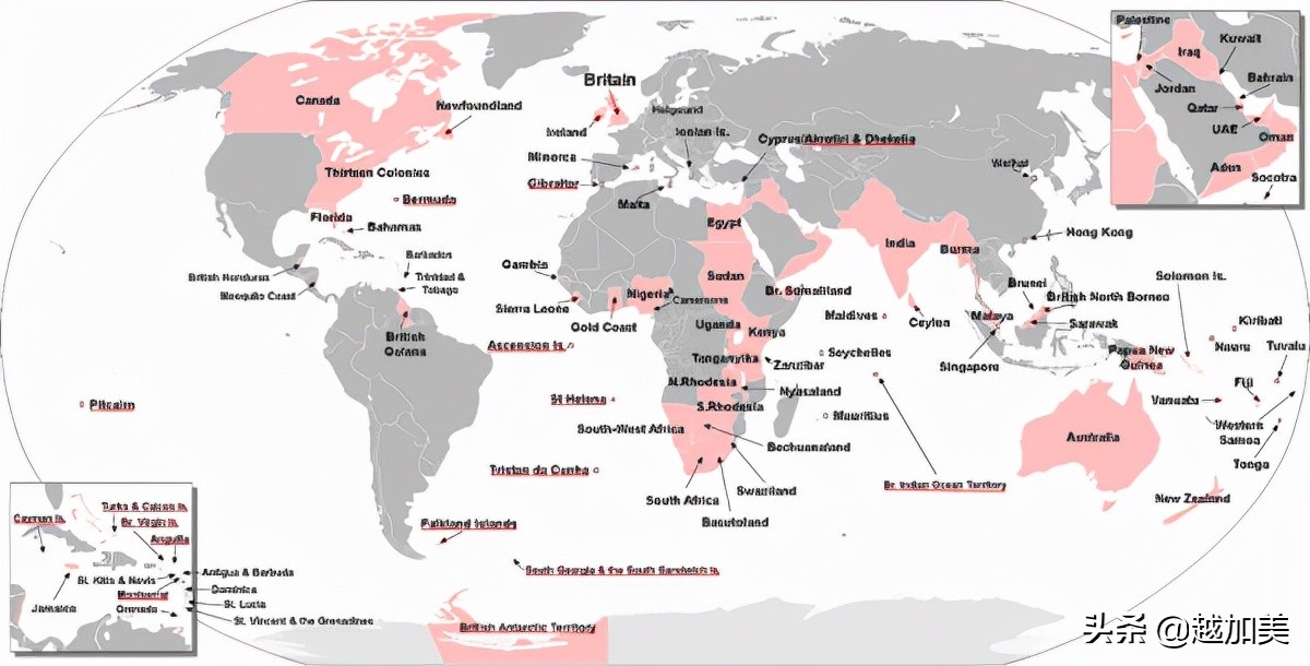 大英帝国崩溃后形成的英联邦仍有53个成员国,包括英、印、巴、加等大国。 |