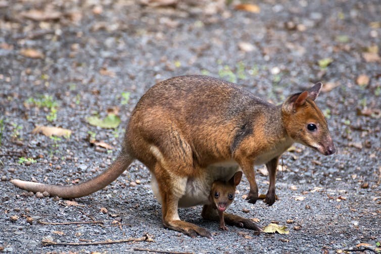红腿帕德梅隆是一种小型的丛林袋鼠,尾巴短、毛发稀疏、像小袋鼠一样,通过跳跃来移动。它们主要分布在澳大利亚昆士兰州和新南威尔士州的沿海地区,栖息在茂密的下层和地面覆盖的森林中,热带雨林、潮湿的桉树林和藤蔓灌木丛,都是它们喜欢待的地方。起初,科学家们认为哺乳动物是无法接触金皮树的,当看到这些红腿硬汉咀嚼树叶时,他们都很震惊。