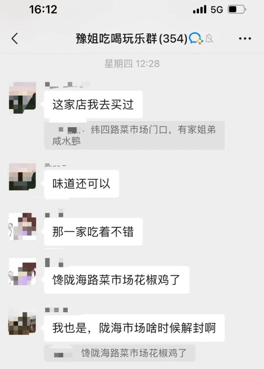 豫姐的吃喝玩乐群里,馋陇海市场花椒鸡的朋友们,每天一问今天陇海市场解封了吗?,终于可以去大饱口福了。