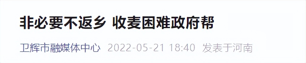 省内多地喊话外地老乡:非必要不返乡,麦收困难政府帮。
