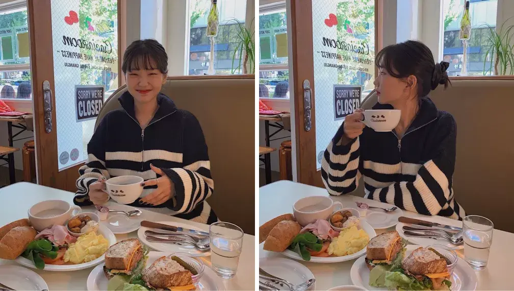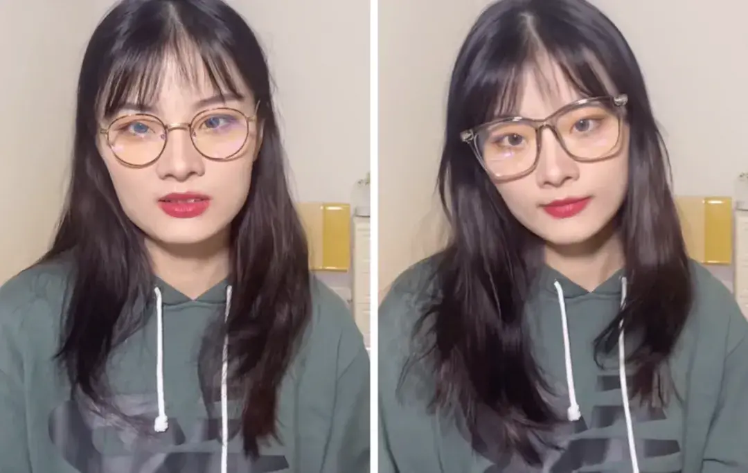 而右边大镜框,超过颧骨了,就感觉给脸收进来了,五官看着也舒展开了。