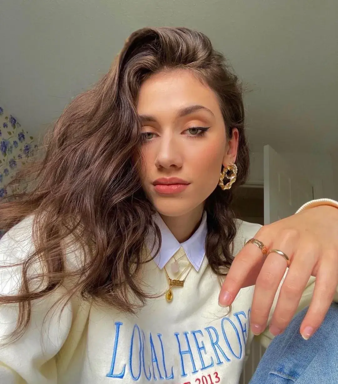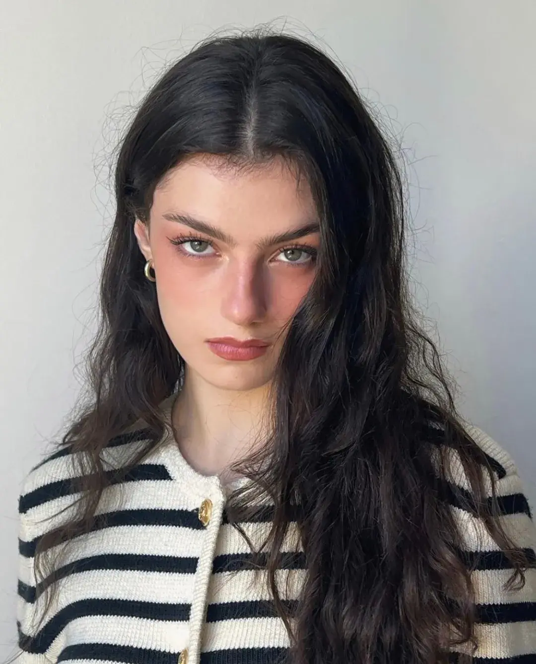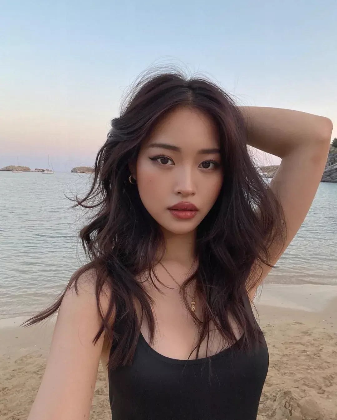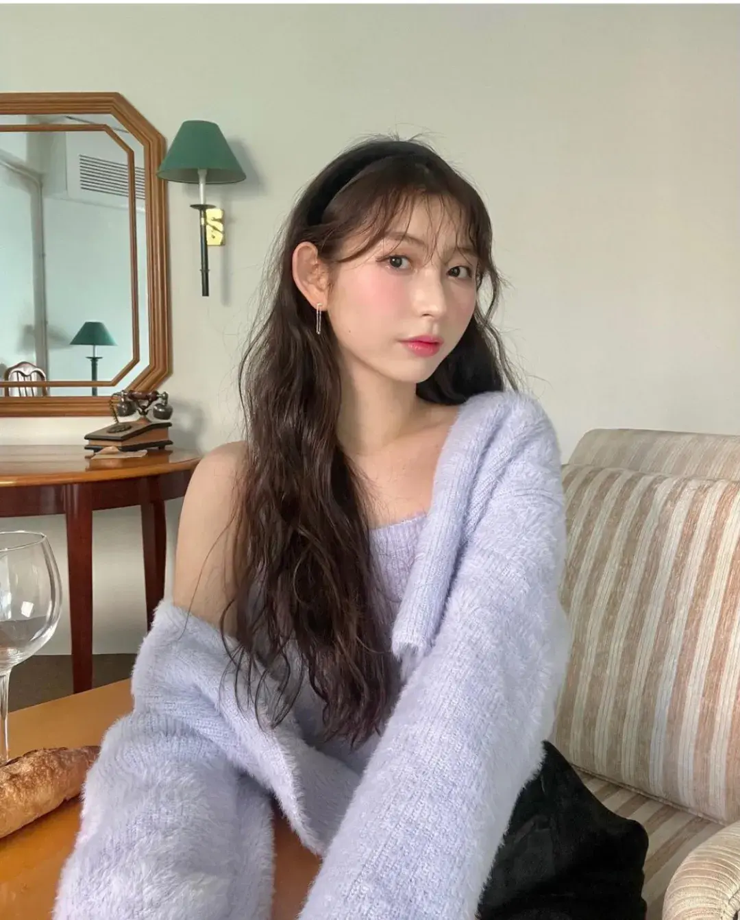 长直发的圆脸,长度超过下颌的碎刘海更修饰脸型也更酷一点。