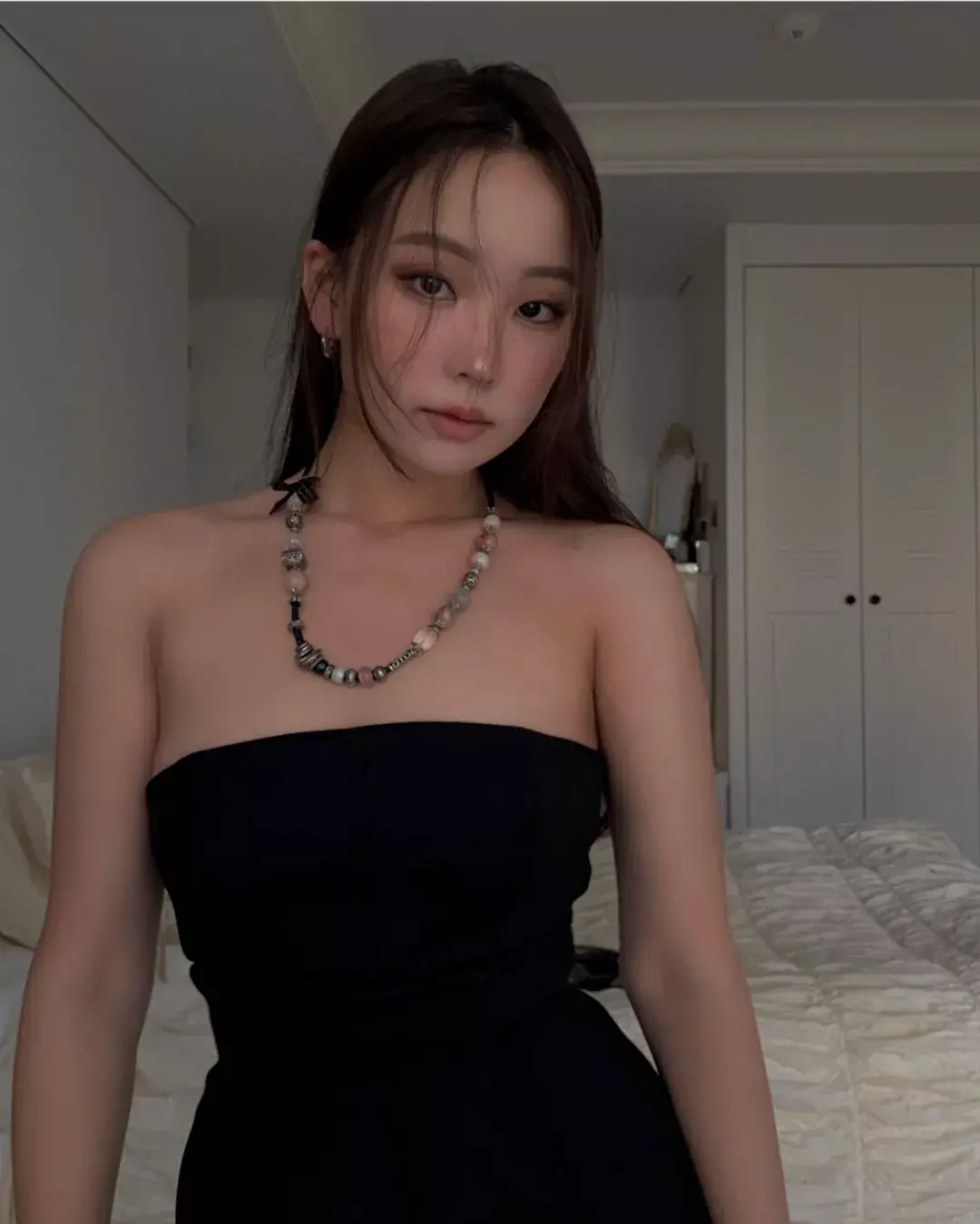 把锁骨露出来,有了脖子的延长,脸的边界感就不明显了。给人的感觉只是脸上有肉,身上也不胖啊。