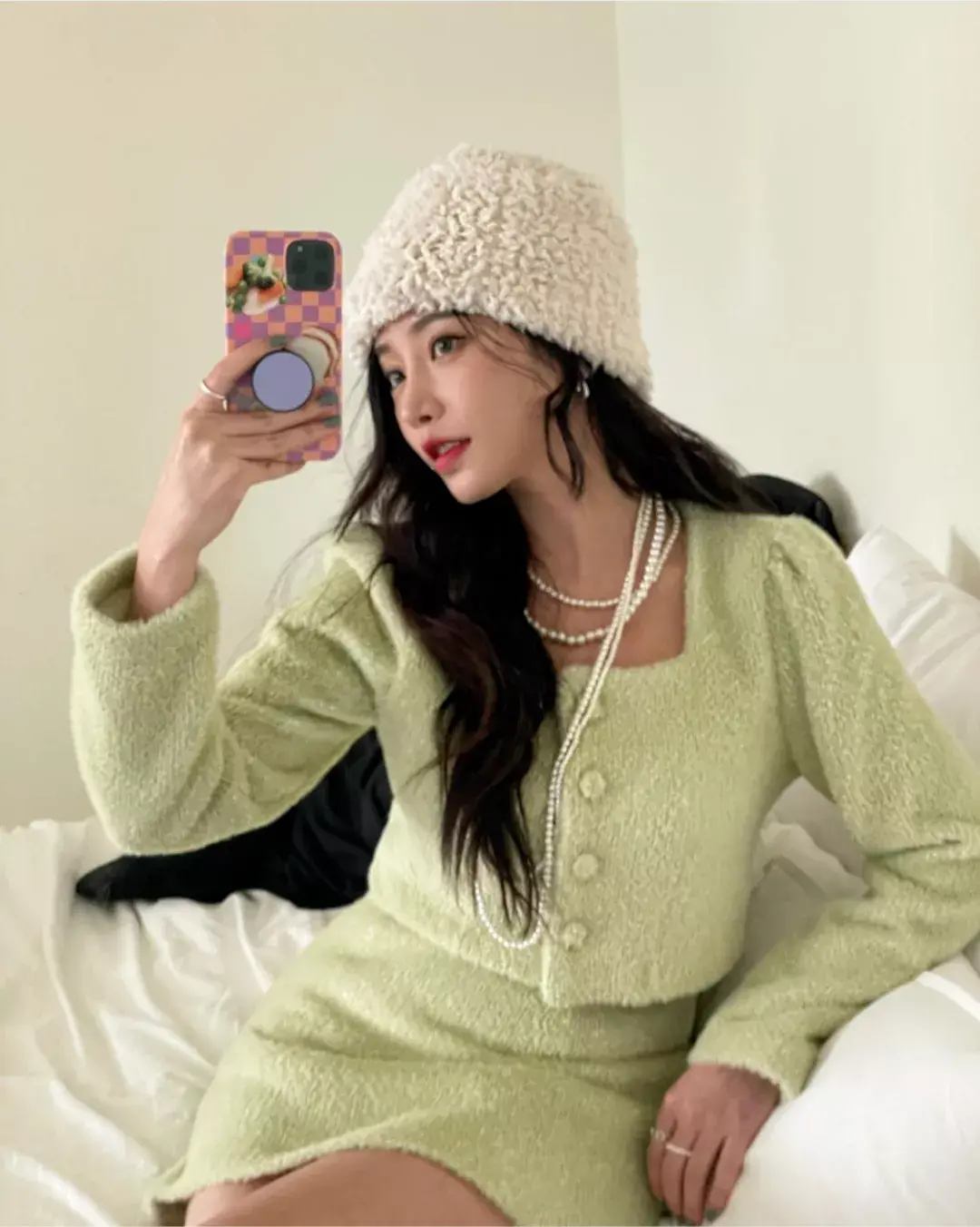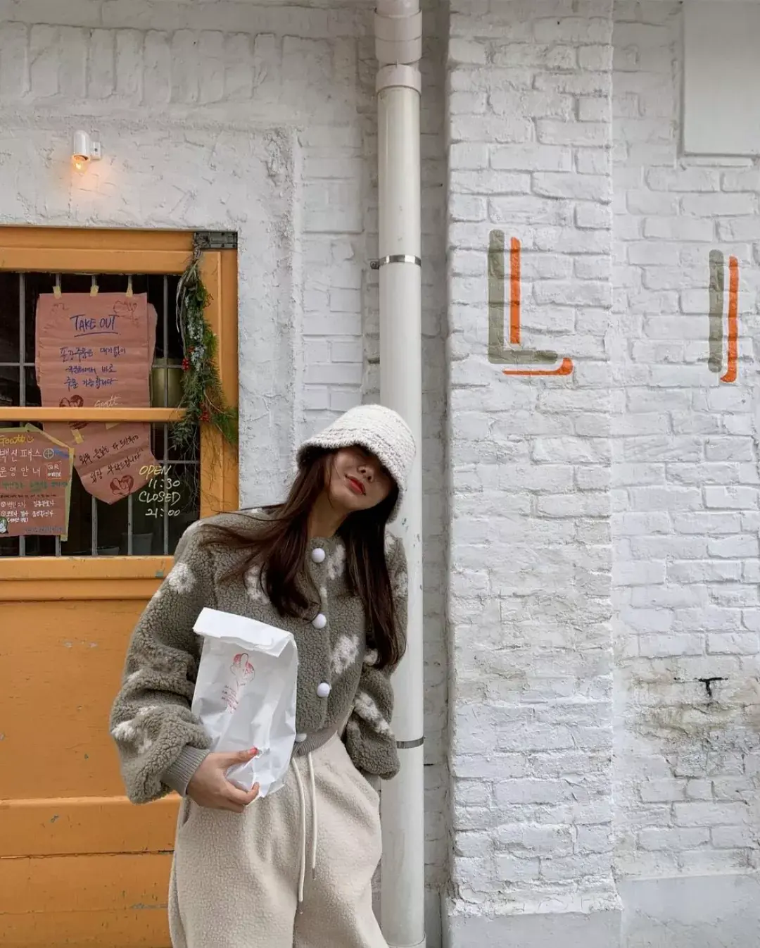 这种毛衣两件套,暖和,拍照还能凹造型。