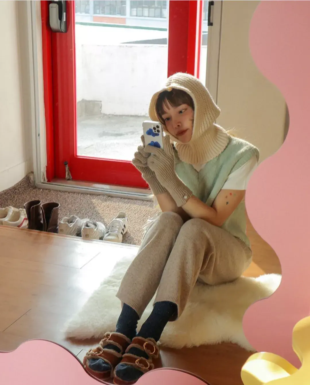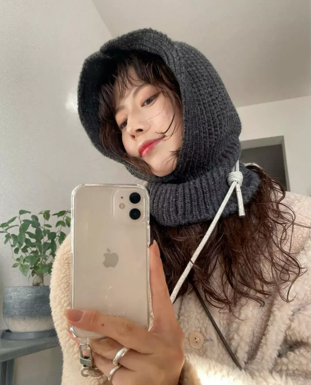 像针织帽,只要保证厚度,就不用担心显脸大。