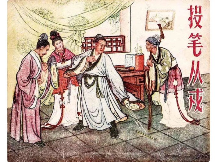每当抄书累成狗的时候,看看理想和现实的差距,班超都会望天喟叹。终于有一天,他忍不住了:我咋能整天抄抄写写呢?我的偶像可是傅介子、张骞啊!冲动之下,他扔了笔墨,准备从军。
