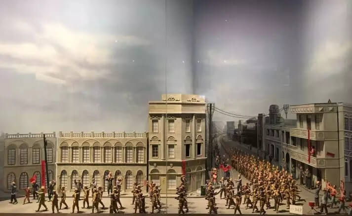 《武汉近现代历史陈列》通过历史文物与相关史料的展示,艺术作品与场景复原的运用,展示空间与辅助展品的设计,营造出梦幻逼真的观赏效果,全景展示了百余年间武汉的城市演进轨迹。