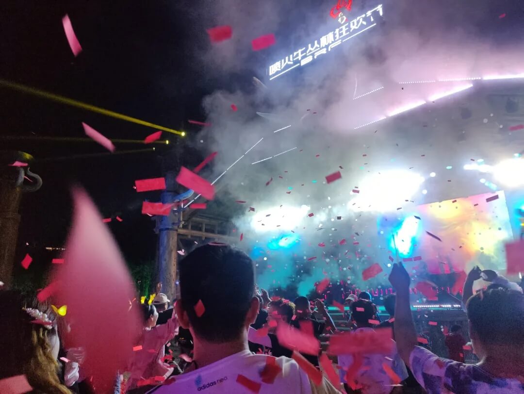 演出内容:每当大型节日的时候,土家族往往会通过篝火晚会的形式来庆祝。如今锦里沟喷火牛丛林音乐狂欢节成功的将中国传统的民俗节日与国际电音相结合,做到了将民俗节日与现代声光电结合。让中华传统节日可以通过现代化的方式传播到世界。同时也让当代年轻人打破对于中华民俗传统节日的固化思维,以新的方式将传统文化融入到年轻一代。
