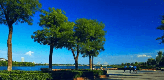 登山远眺,遗爱湖及古城风景奔来眼底,可谓山与城相连、城与湖相接,湖光山色相得益彰。