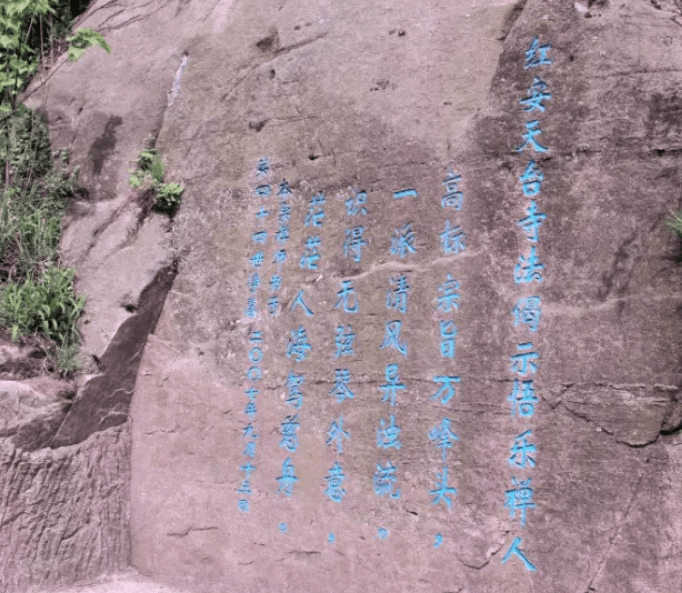 天台山佛源悠久,香火旺盛。2004年红安县人民政府为弘扬佛教文化,仅用了三年时间便修建了山门、中门、天王殿、大雄宝殿,观音殿,祖师殿、斋堂、居士楼,僧聊房等多座建筑,吸纳出家弟子七十余人。