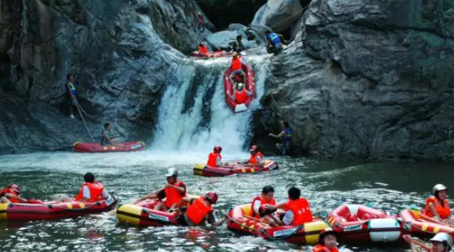 龙潭峡漂流位于龙潭河谷下游,全长2.5公里,海拔落差近100米。两岸青山对峙,苍莽叠翠,峡谷曲折幽深,荡舟飞瀑流泉,与浪共舞,怡然自得。