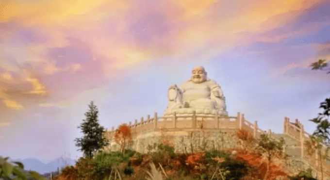走进仙佛寺景区,映入眼帘的便是巨大的广场,里面有一个气势宏伟的牌坊,和一座高大的手持净瓶面朝酉水的双面南海观音塑像。