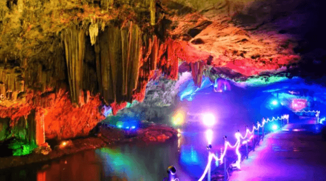 当你乘坐洞内火车在迷宫中穿行,好似神仙下凡,梦幻无穷;罕见的洞穴生物,犹如外星来客,与人共舞,独特景观让你大饱眼福。它是湖北省命名的首家地质公园,被专家喻为“洞天华中—中华天洞”和“神秘的地下明珠宫殿”。