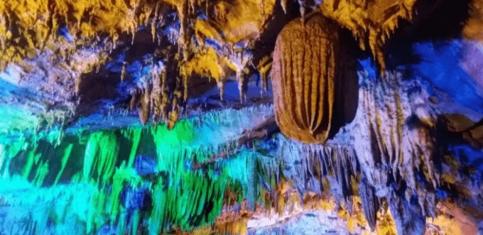 洞中的石笋、钟乳、石幔等奇妙景观千姿百态,伴随着美妙神奇的传说,引人入胜。