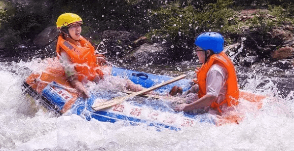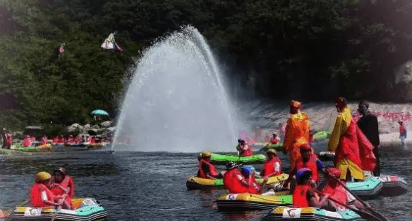 漂流时间大约为2个小时,两岸悬崖陡壁,奇峰怪石林立,全程水量大,时而奔腾直下,时而回旋幽谷,使人心旷神怡。其间还伴有瀑布、塑溪等项目。