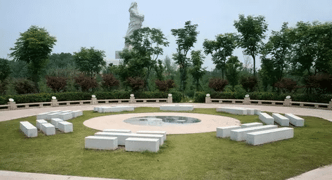 旭日园造型似太阳,中间是太极八卦图案,周边是八卦符号,外侧栏杆上篆刻着农业二十四节气。