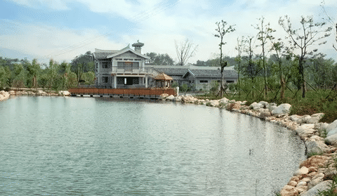 弯月湖呈一弯新月的形状,与东边的旭日园遥相呼应,一月一日,一阴一阳,对称和谐。