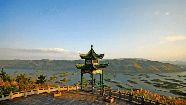 有诗赞:登高临栏眺平湖,信步极目数千岛。君临天下犹威严,守望红尘望仙崖。