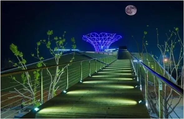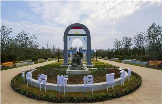 在造型上提炼伊斯兰建筑中的经典元素运用到景墙中,大量使用中亚人民喜欢的绿色,象征幸福和美好。