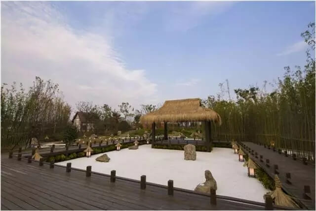 园内展示日本园林特色和关市特点,设置鸟居、日式凉亭、日式枯山水、竹筒流水禅意空间等景观,栽植樱花、红枫等主景树。