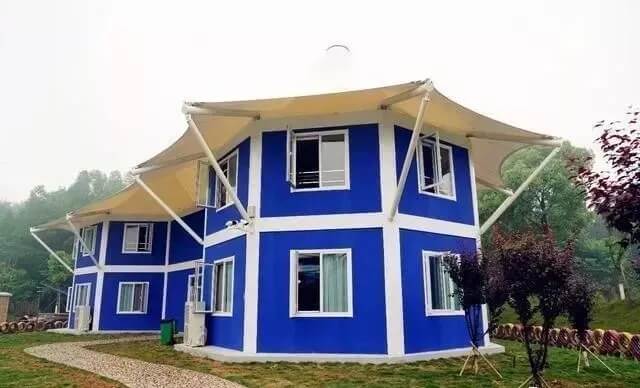 掩映在花丛中的几十栋圆形小屋美丽大方绝对让人眼前一亮。这些小屋各个依山而建,形似鸟巢。