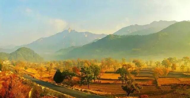 开车行驶在通往景区的黄冈大别山红色旅游公路上,沿途白霭中的村庄充满了徽派建筑的古朴之感,火红色的枫叶在夕阳映衬下则更显温柔,给这幅静默的山水画添上了火热的色彩。