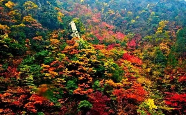 这样的林海无疑是美丽的,满眼梦幻般的红叶铺天盖地,让人陶醉,一丛丛、一簇簇、一坡坡、一山山是数不尽的红色,绚丽得令人陶醉。