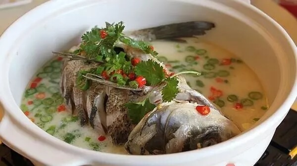 “清蒸武昌鱼”是选用鲜活的樊口团头鲂为主料,配以冬菇、冬笋、并用鸡清汤调味。成菜鱼形完整、色白明亮、晶莹似玉;鱼身缀以红、白、黑配料,更显出素雅绚丽。