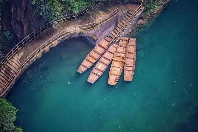 作为网红打卡地,有其名副其实的魅力。四周峭壁悬空,在峡谷中的水面游弋,抬头看去,四周峭壁耸立,溪流环绕。碧绿湛蓝的水,清澈的像童话故事一般,乘一艘小船顺流而下,蜿蜒的河道,盘旋的山崖,寻迂回处翩舟侧过,人在画中一般。