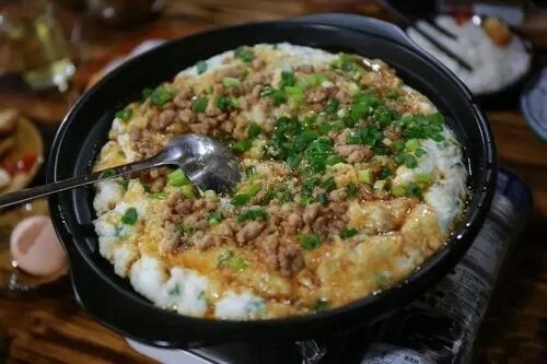 民谚曰:“不喝油茶汤,心里就发慌”,“一日三餐三大碗,做起活来硬邦邦”。土家油茶汤用食用油炸适量茶叶至蜡黄后,加水于锅中,并放上姜、葱、蒜、胡椒粉等天然佐料,水沸后舀入碗中,加上事先炒好(或炸好)的炒米花、玉米花、豆腐果、花生米、黄豆等“泡货”即可食用。土家油茶汤是恩施土家族具有代表性的饮食文化之一,也是土家人非常钟爱的传统食品,凡是贵客临门,土家人都要奉上一碗油茶汤。土家油茶汤香、脆、滑、鲜,味美适口,提神解渴,堪称中国茶文化一绝,源远流长。至今在全州,特别是在咸丰、来凤等地盛行。