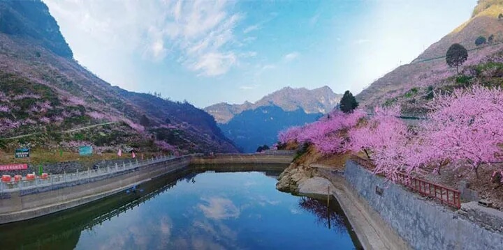 每年三四月份是七仙红桃园观赏桃花的大好时节,桃枝随风飘动,如仙女翩翩起舞。桃花与绿树映衬,人影与桃红随行,勾勒出了一幅“天仙游人间,人间花相迎”的春日胜景。