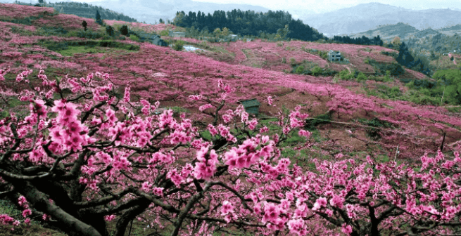 枣阳市平林镇是全省闻名的桃树种植大镇,每年的四月是桃花盛开的季节,粉红的桃花把连绵起伏的山岗装扮成花的海洋,吸引无数游客前来赏花。