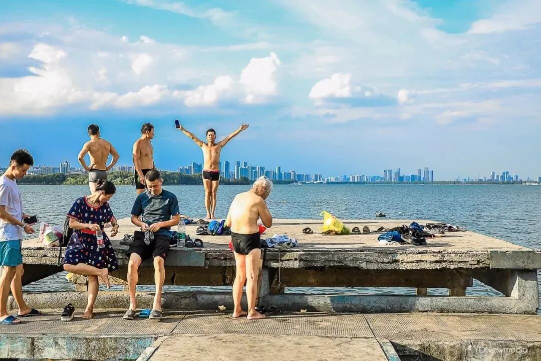 这里有亲水平台深到东湖水面上,每逢夏日就有许多武汉市民和武大学子前来免费游泳。这里也有许多摆渡的船家,摇橹船或是电动船可以将游人带到听涛景区和磨山景区。
