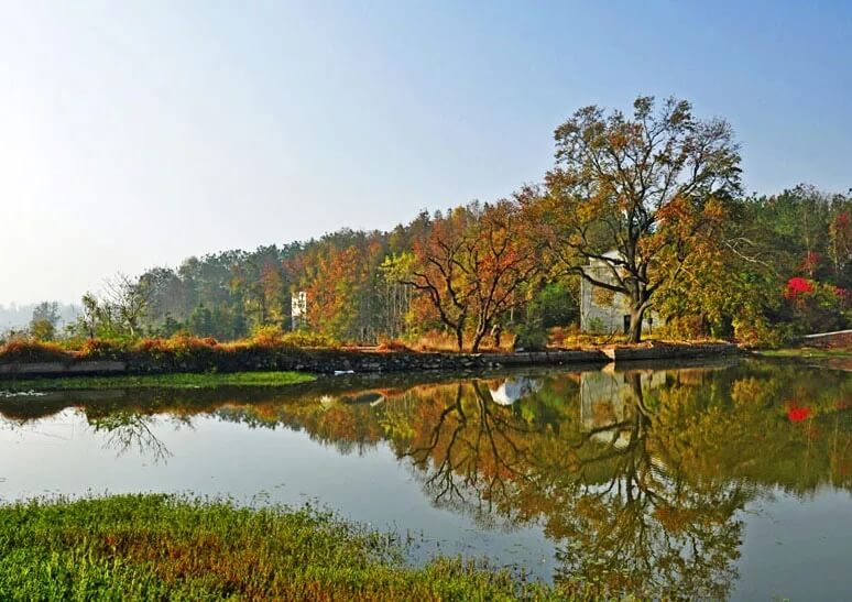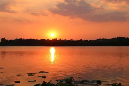 透明清澈的后官湖中,枯黄的芦苇、荷叶别有一番韵味,不时有一只只野鸭在湖中掠过,激起层层涟漪。为了保护水质,湖岸50米都被纳入了保护区,一些农田、菜园和猪圈都被清除,新栽的树和种的草卫士般守护着这片土地。现在,后官湖湖水碧绿,天空瓦蓝。路边还有成片的橘园,一颗颗红色的橘子星星般点缀在枝头。橘园里,杂草丛生,原生态的色彩如此真实地画在你的脑海里。秋季时芦苇与木栈道是自然与人工的巧妙融合,远胜过多年来被武汉人追捧的二桥下芦苇荡。
