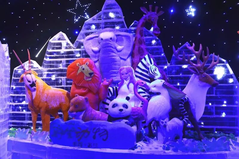 (三)冰雪世界。童话般梦幻的动物主题冰雪世界,让你能在里面尽情的观赏冰雕、拍照打卡、体验投影互动游戏,还有璀璨的星空馆,让你感受灯光的绚丽,闪闪发亮的梦幻世界,随手拍都是网红大片。