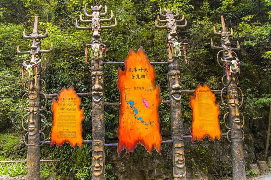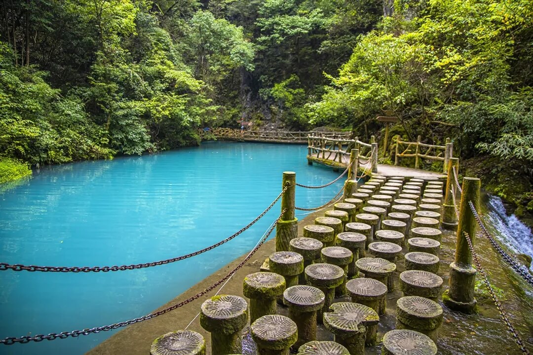 碧蓝色的尧治河,全长5公里蜿蜿蜒蜒围绕着尧帝神峡谷,相传这里是尧帝在巴山一带治山治水时生活过的地方。