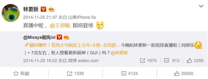 还有一个现场的小伙伴爆料说王思聪骂了林更新五分钟,主播把这段给静音了。
