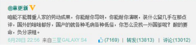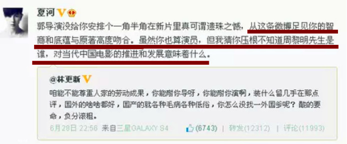 此时,全程围观小时代事件的夏河下场嘲讽林更新。