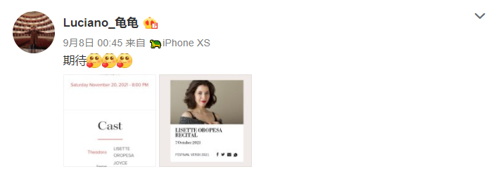 其实女高音歌唱家奥罗佩萨一直是刘建伟的偶像,他从9月初就开始期待奥罗佩萨在意大利的音乐会。