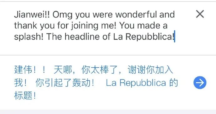 奥罗佩萨称:建伟!!天哪,你太棒了,谢谢你加入我!你也引起了轰动!