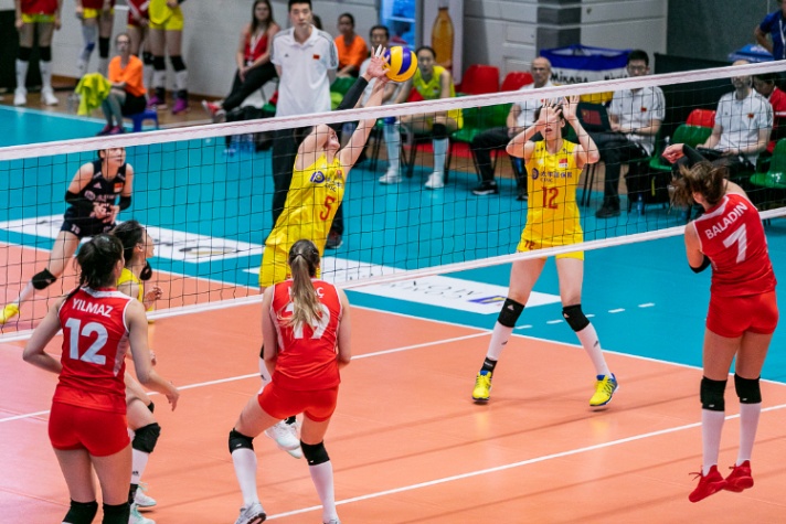 5月18日,2019年瑞士女排精英赛五六名争夺战打响,中国队对阵土耳其队。