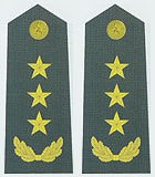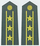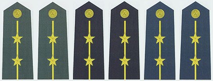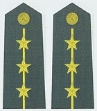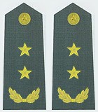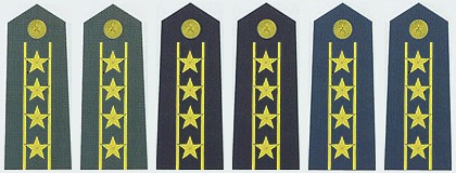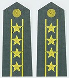上将:中央军事委员会副主席、委员、总参谋长、总政治部主任的编制军衔;正大军区职的主要军衔;副大军区职的辅助军衔