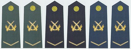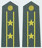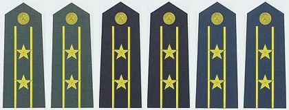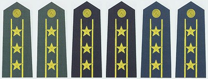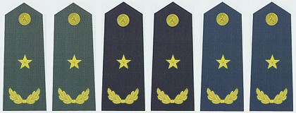 金色的松枝加一颗金星是少将 金色的松枝加二颗金星是中将