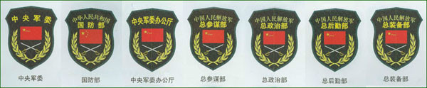 带旗帜的,都是些超级牛的单位呀!四总部的臂章,带军旗的代表是总部机关的,没有军旗的代表是下面的直属部队的。