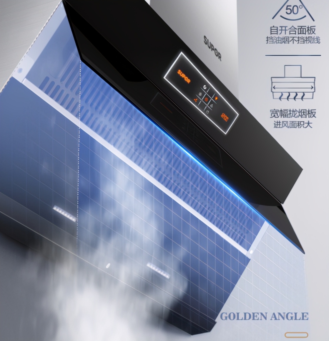 - 挡板是一键开启、自动开合的,有这种打开挡板的拢烟效果会好很多