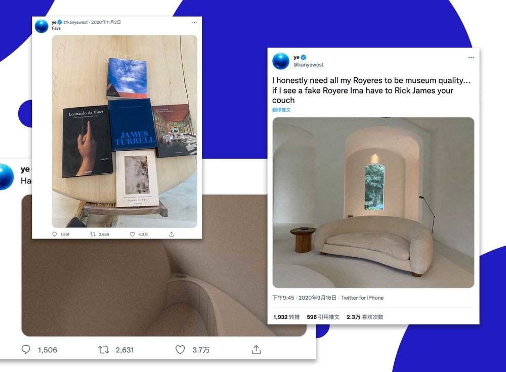 Kanye West 可能是最爱自己晒家具的人了,他曾在网上一再表示自己对法国设计师让·普鲁韦在20世纪40年代末设计的Ours Polaire(法语:北极熊)沙发的喜爱。