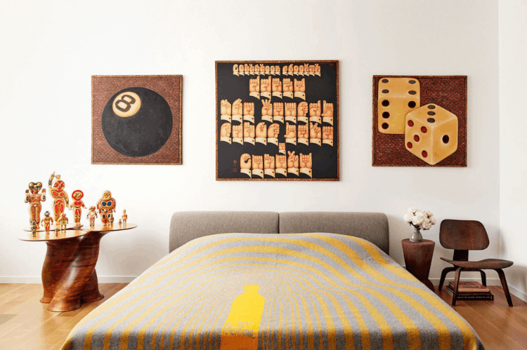 从布鲁诺·马松的三联夏娃椅(60年代原版12000美元)、尼尔斯·奥托·穆勒设计的80型餐椅(60年代原版2500美元),到给孩子坐的Stool E60(全新价值380美元),再到卧室那件被《时代》杂志誉为世纪之椅的DCW(40年代原版2800美元),你大可以把Kaws的家称为中古椅子博物馆。