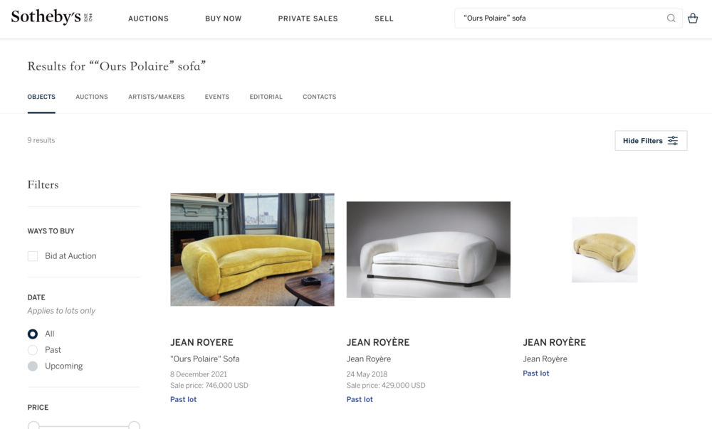 在2021年12月8日的苏富比拍卖上,让Kanye爱到发狂的同款黄色Ours Polaire沙发拍到74.6万美元(约合473万元人民币)。