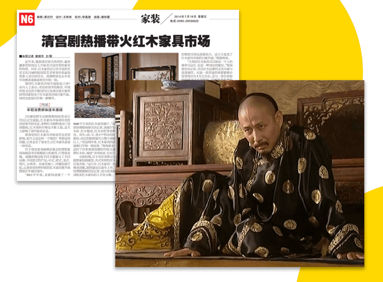 在《铁齿铜牙纪晓岚》《康熙王朝》之类的宫廷剧和文化宣传组合攻势下,不少人的爹妈都迷上了红木家具,也没跟你商量,就把这些大家伙一股脑儿地往家里搬。