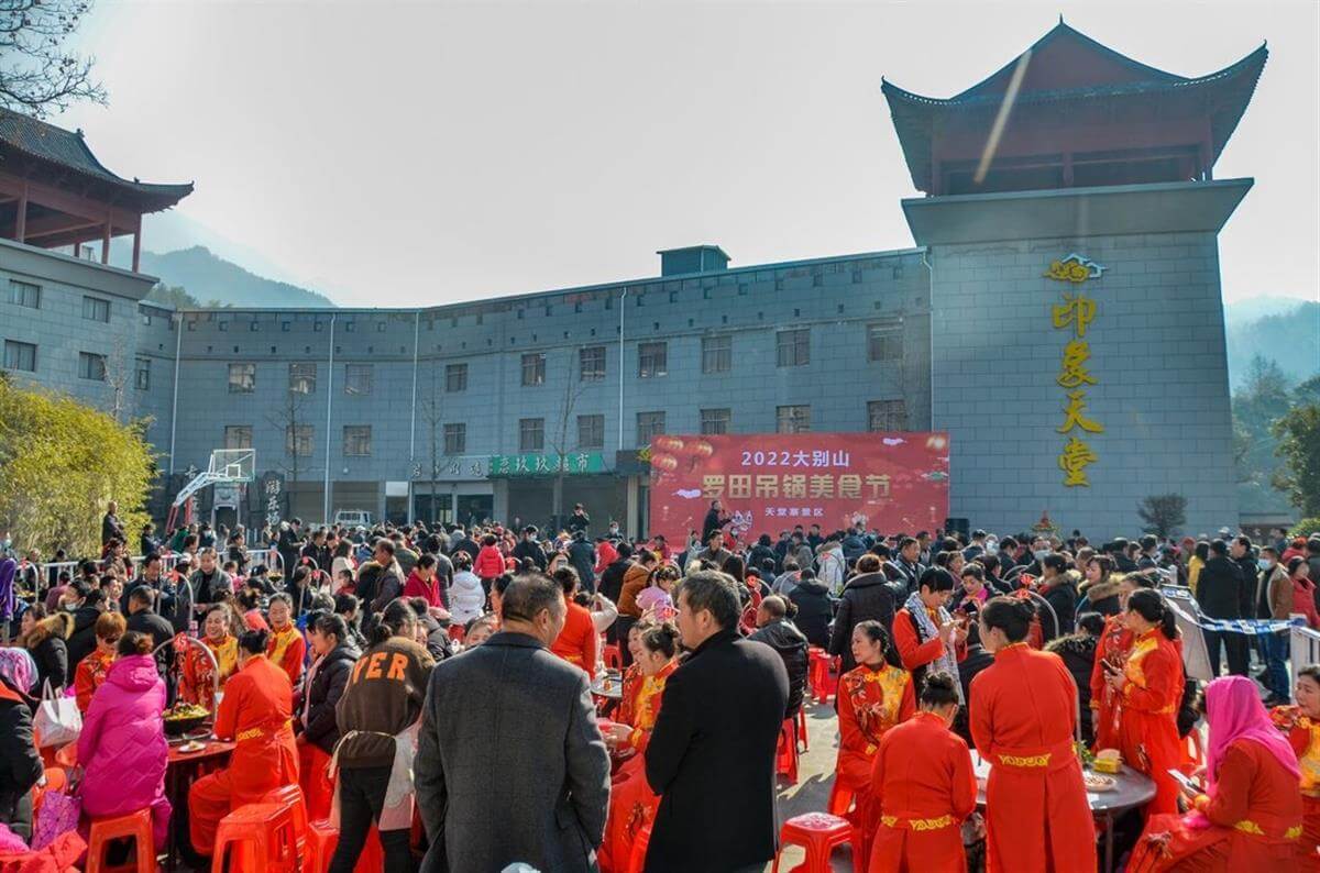 新年新气象,当天天堂寨脚下的罗田县,冬日的阳光温暖和煦,罗田县“红色文艺轻骑兵”在三大景区为游客表演了精彩的文艺节目。九资河镇农家乐老板拿出自家拿手的吊锅,食材选料、烹制、摆锅都有讲究,现场比的是看相、味道,享受的是大快朵颐和其乐融融。